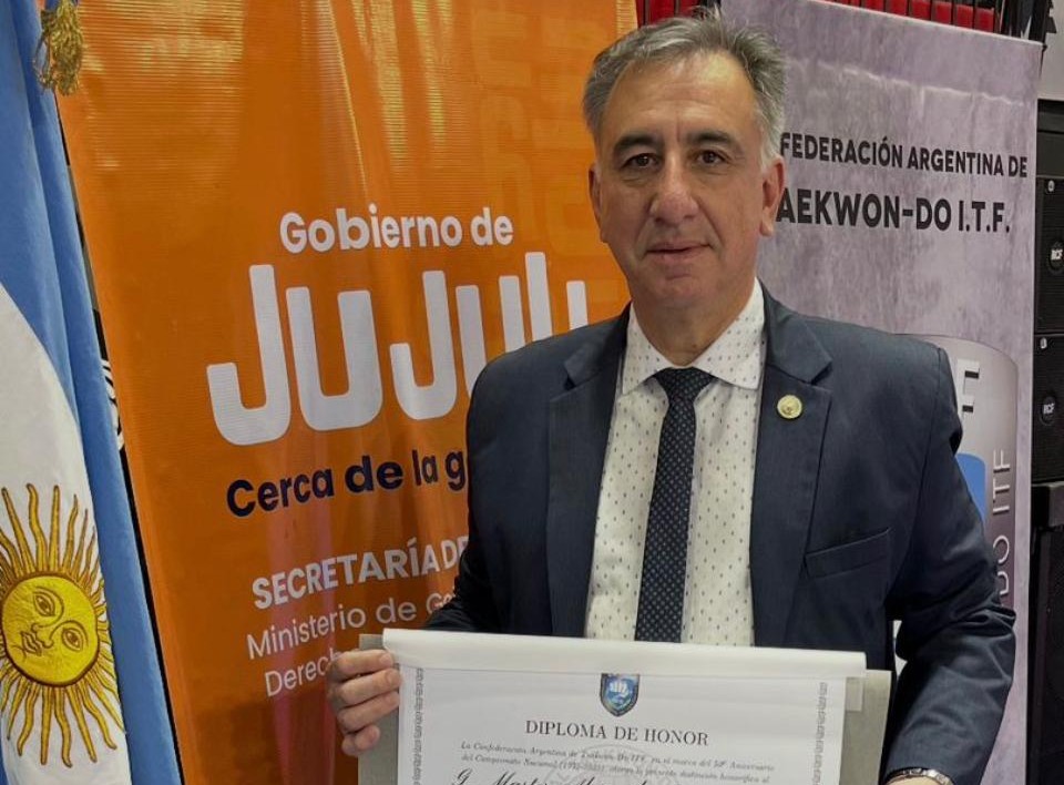 El dirigente marplatense recibió un reconocimiento especial de la Confederación Argentina de Taekwondo ITF durante la apertura del Nacional en Jujuy, donde además la delegación local obtuvo 10 medallas y se confirmó que Mar del Plata será sede de la Copa de la Costa 2026.