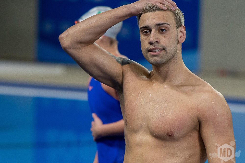 Después de tener que recurrir a un desempate entre tres nadadores por una plaza en la Final «A» de los 100 metros libres, el marplatense disputará esta noche la competencia «B». Gran performance corriendo por tercera vez la distancia por debajo de los 50 segundos.