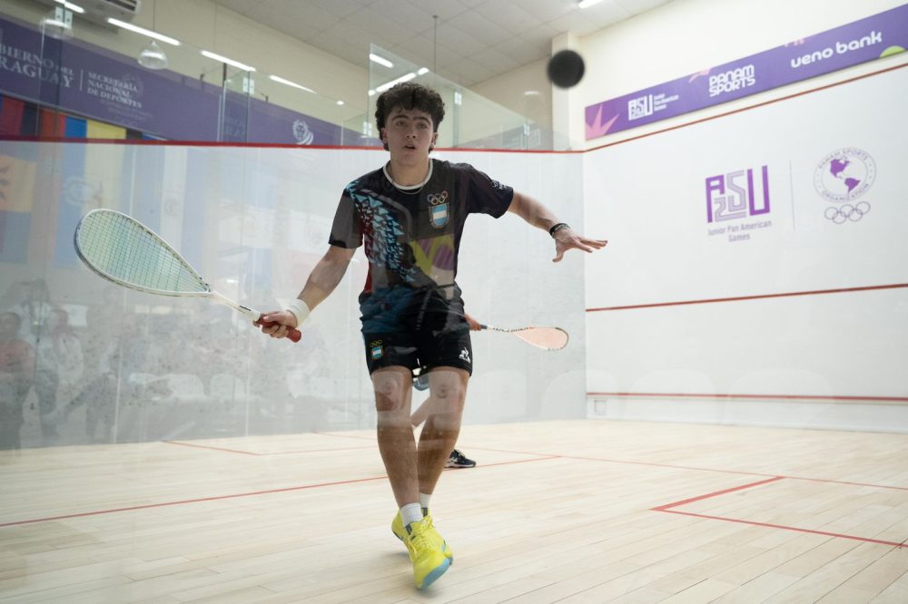 Segundo Portabales en competencia (Foto: Alejandro Salgado) El squash comenzó con la actividad en los Juegos Panamericanos Junior de Asunción del Paraguay y el marplatense Segundo Portabales, ya dio los dos pasos que necesitaba para asegurarse la medalla de bronce en el torneo. Con una sólida actuación, ganando los dos partidos del día por 3-0 con absoluta contundencia; está en